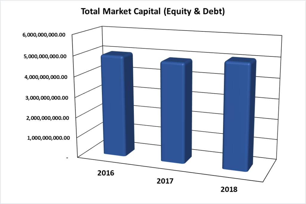 Over the 3-year period 2016 to 2018, the market value of all securities listed on BISX has shown a decrease from 2016 – 2017 and an increase from 2017 – 2018, at the beginning of 2018 as indicated by the chart below: