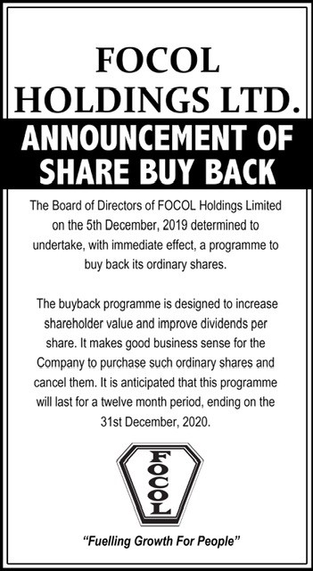 January 14, 2020 by Jacquella Gardiner Jacquella Gardiner No Comments FOCOL Holdings Limited Share Buy Back Notice